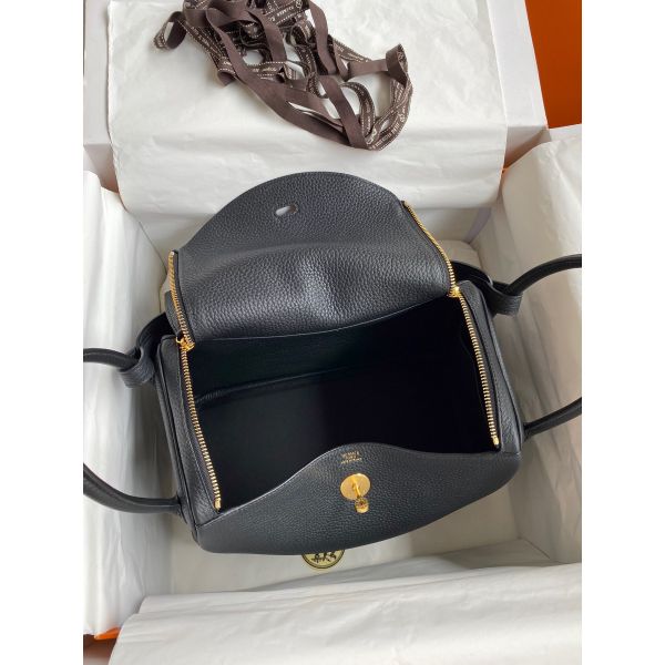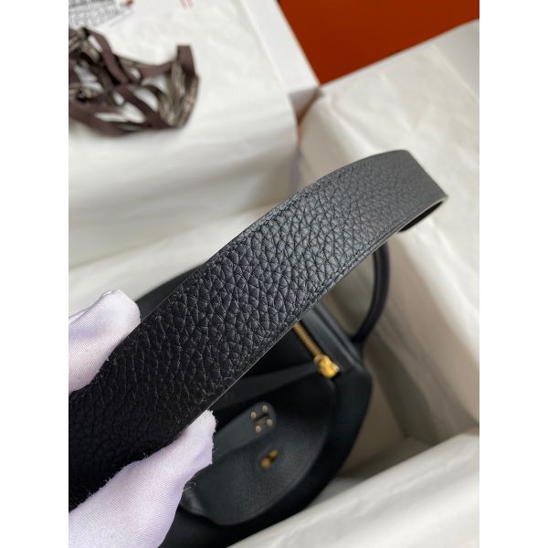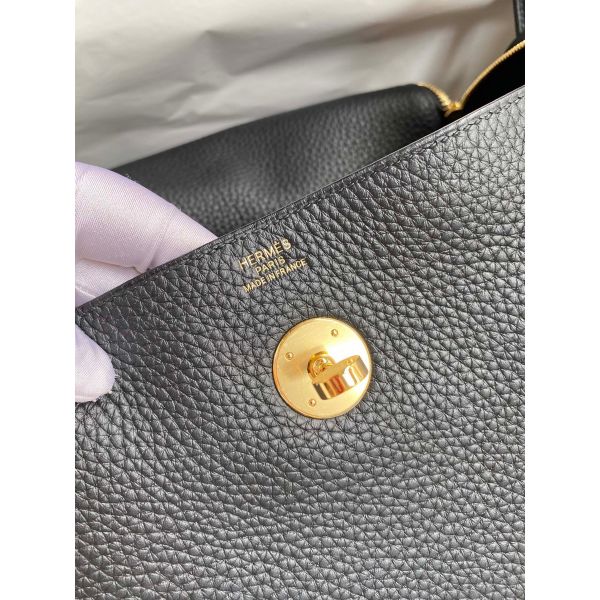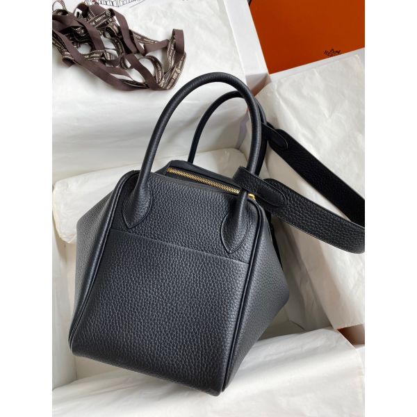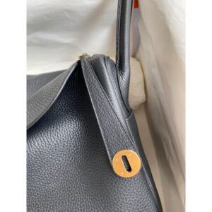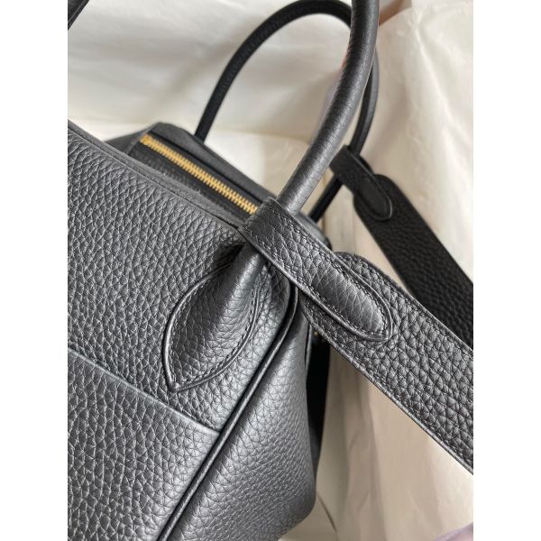 Hermes Lindy 30 Handmade Bag In Black Clemence Leather