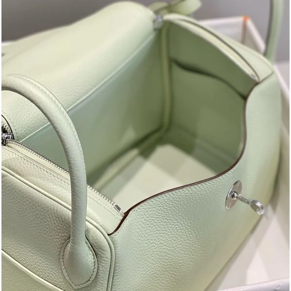 Hermes Lindy 30cm Bag In Vert Fizz Clemence Leather PHW