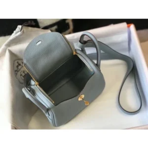 Hermes Lindy Mini Bag In Blue Lin Clemence Leather GHW