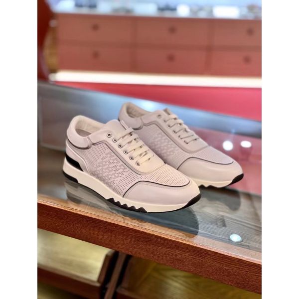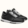 Hermes C-Addict Sneaker in perforated calfskin with “H en Biais” motif. For an elegant and modern look, this pair features black zigzag rubber insert on the front and black rubber insert on the back.