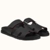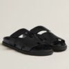 The Hermes Chypre sandal is a luxurious definition of casual urban style. The flats have the signature H strap and a single strap that securely fasten with Velcro for an adjustable fit, and the soles are finished in rubber. The sleek design is meant to look great on your feet as well as guide your steps with comfort.