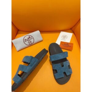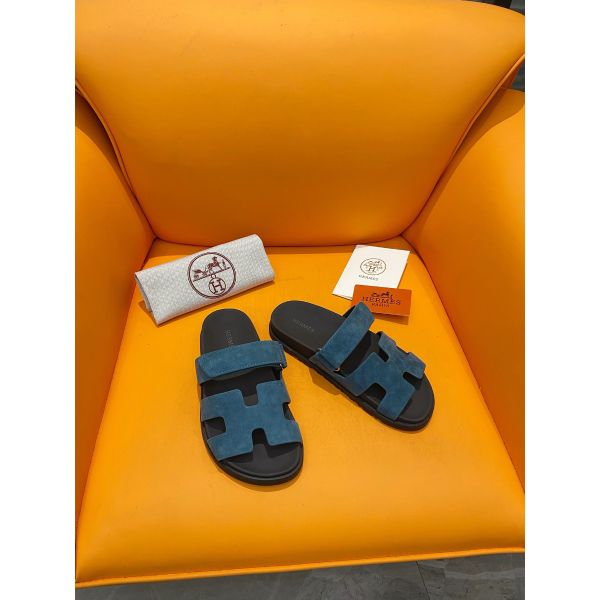 Hermes Men’s Chypre Sandals in Blue Suede Calfskin
