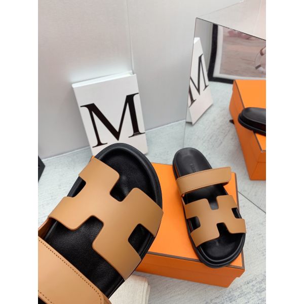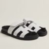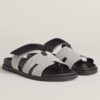 The Hermes Chypre sandal is a luxurious definition of casual urban style. The flats have the signature H strap and a single strap that securely fasten with Velcro for an adjustable fit, and the soles are finished in rubber. The sleek design is meant to look great on your feet as well as guide your steps with comfort.