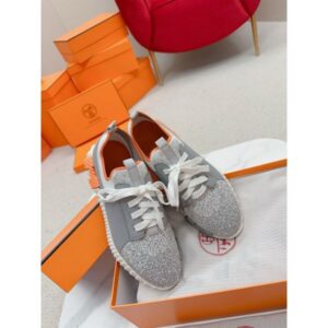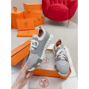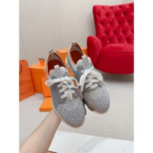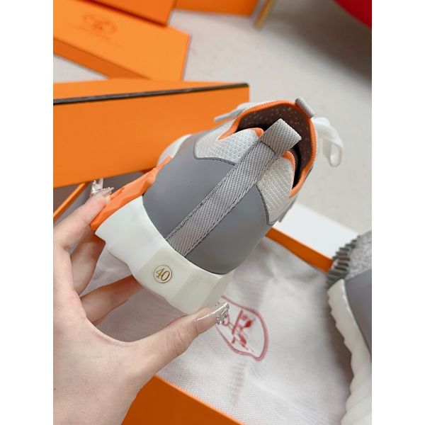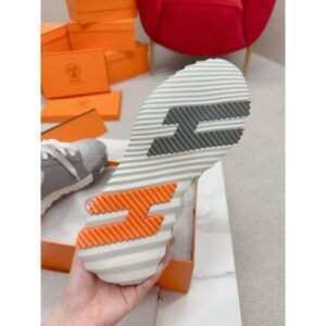 The Hermes Depart Sneakers offer a modern, sporty look with a gradient knit calfskin upper and a lightweight rubber sole with a signature orange edge. Perfect for everyday wear and long-term comfort, this sneaker is designed to be lightweight yet supportive.