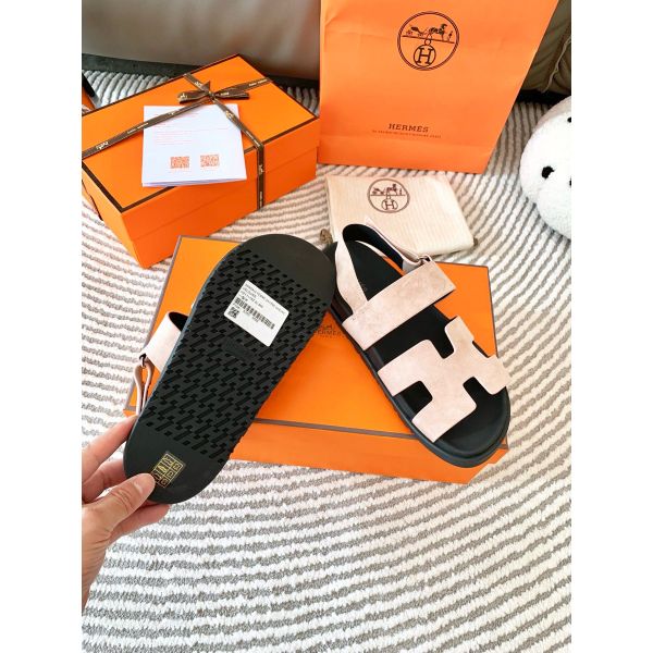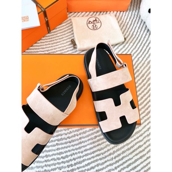 Hermes Men’s Genius Sandals In Beige Suede Calfskin