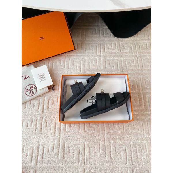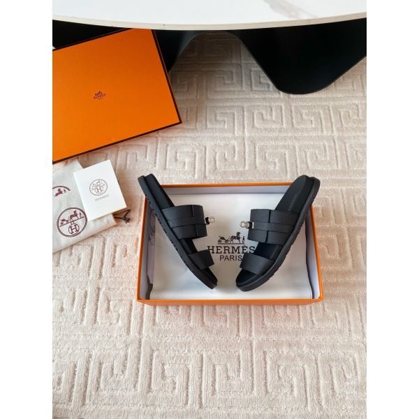 Hermes Men’s Jackson Sandal in Black Epsom Calfskin