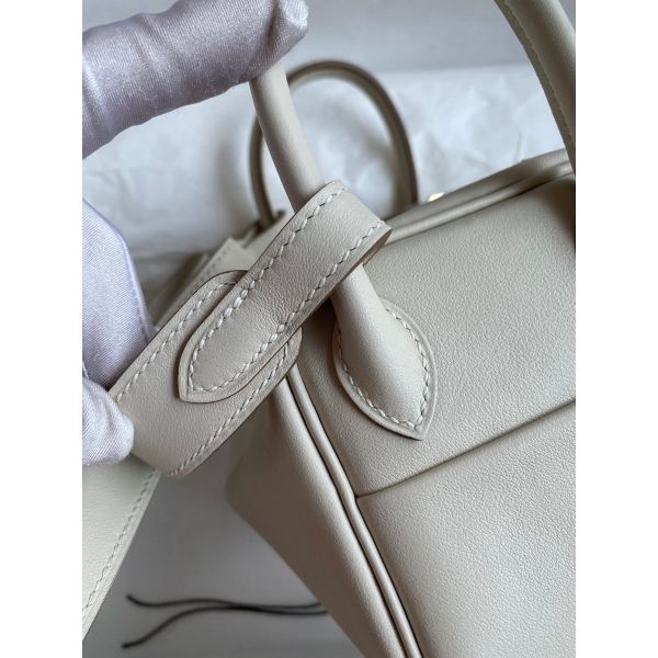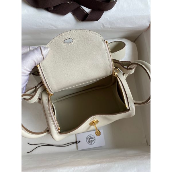 Hermes Mini Lindy Handmade Bag In Craie Swift Leather