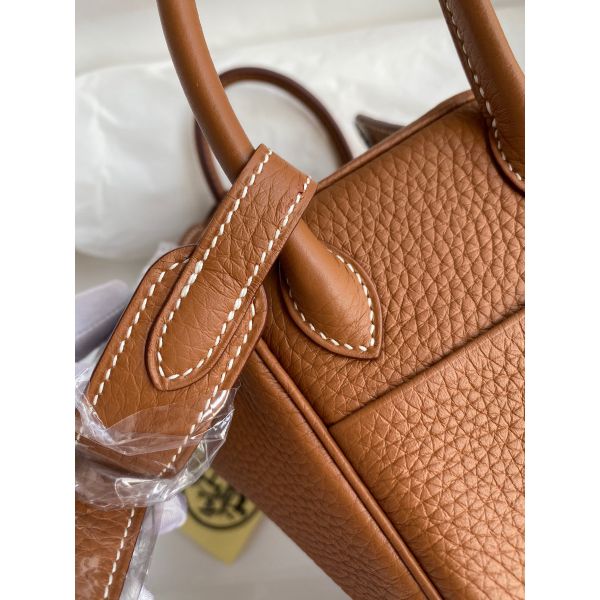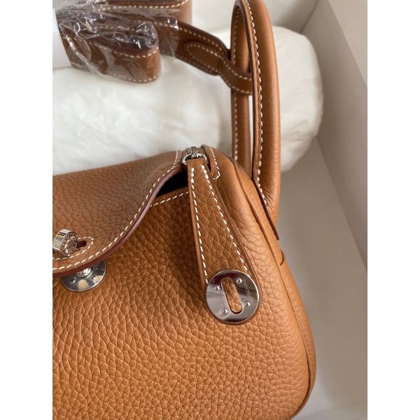 Hermes Mini Lindy Handmade Bag In Gold Clemence Leather
