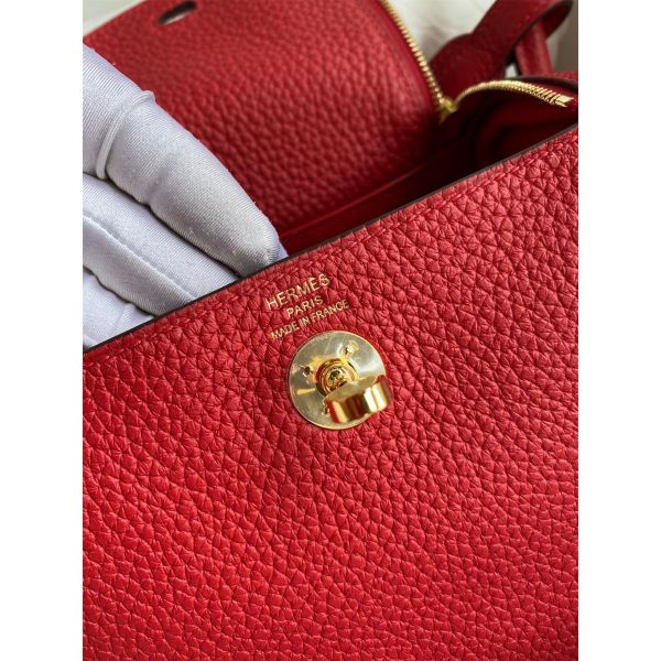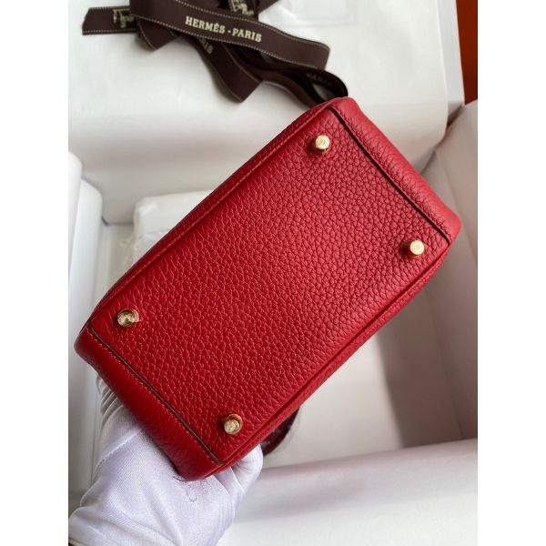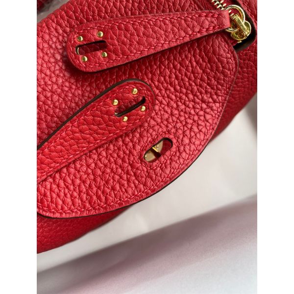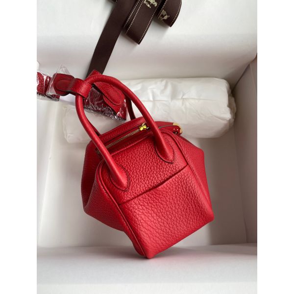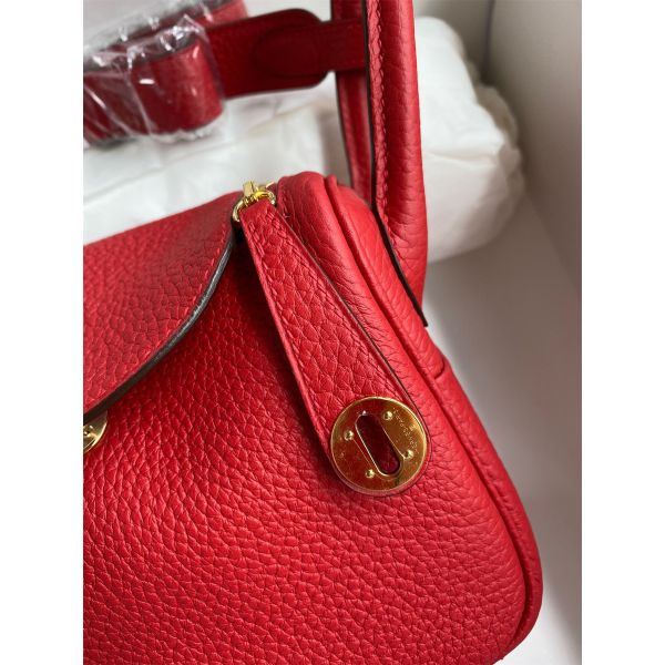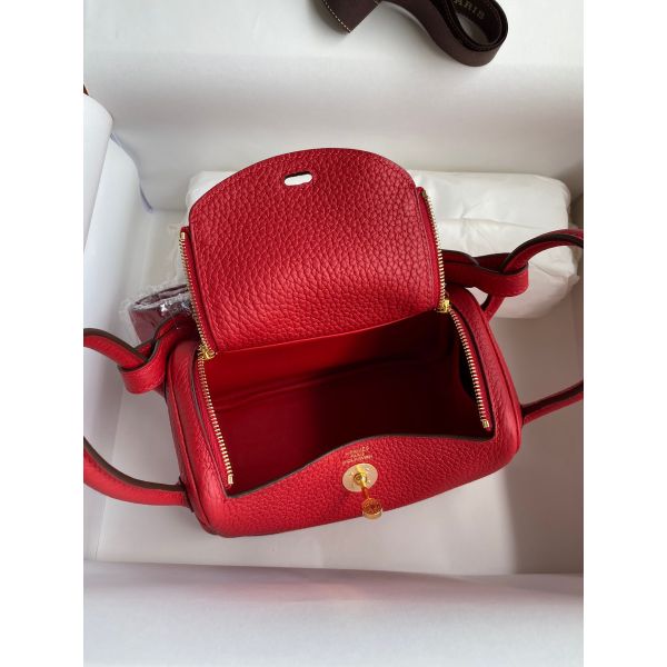 Hermes Mini Lindy Handmade Bag In Red Clemence Leather