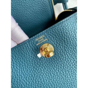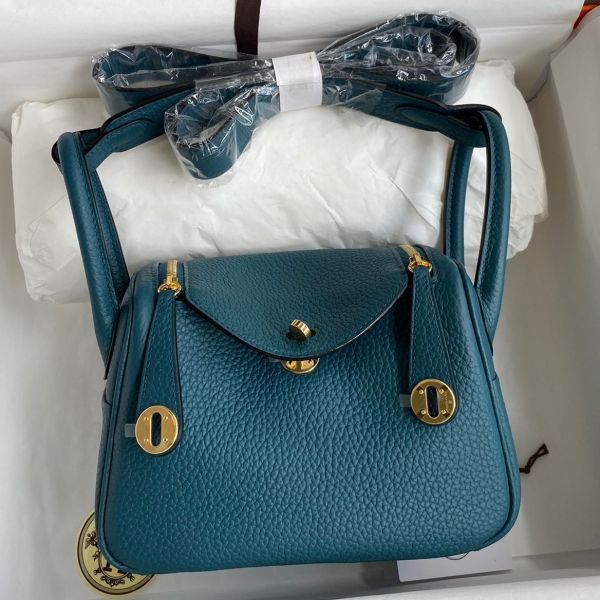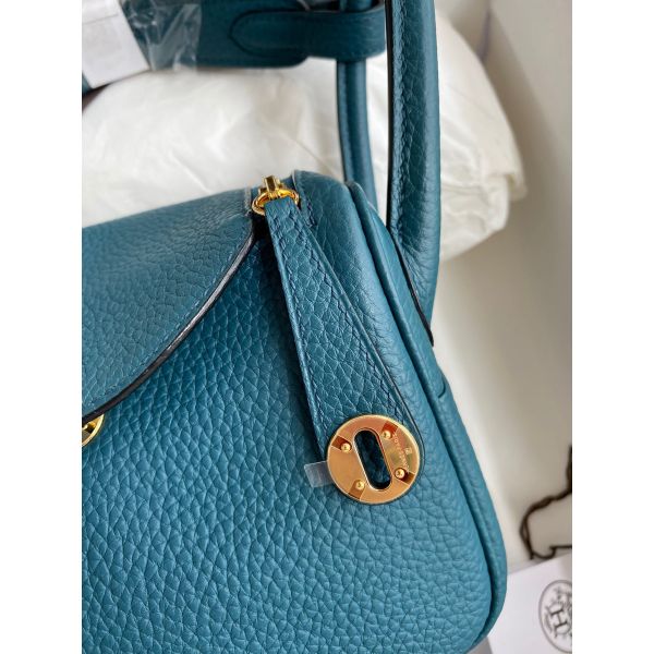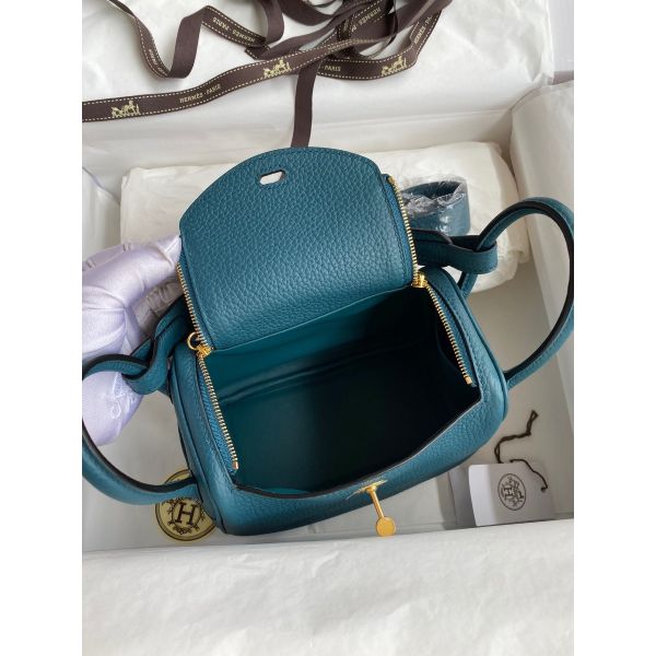 Hermes Mini Lindy Handmade Bag In Vert Bosphore Clemence Leather
