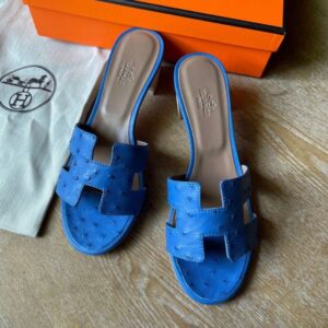 Hermes Oasis Sandals in Blue Hydra Ostrich Leather