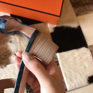 Hermes Oasis Sandals in Blue Swift Leather with Botanique Printed
