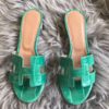 Hermes Oasis Sandals in Blue Swift Leather with Botanique Printed