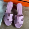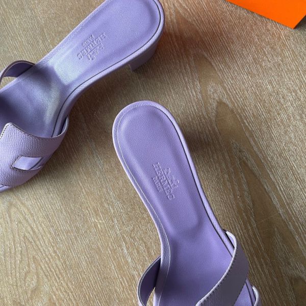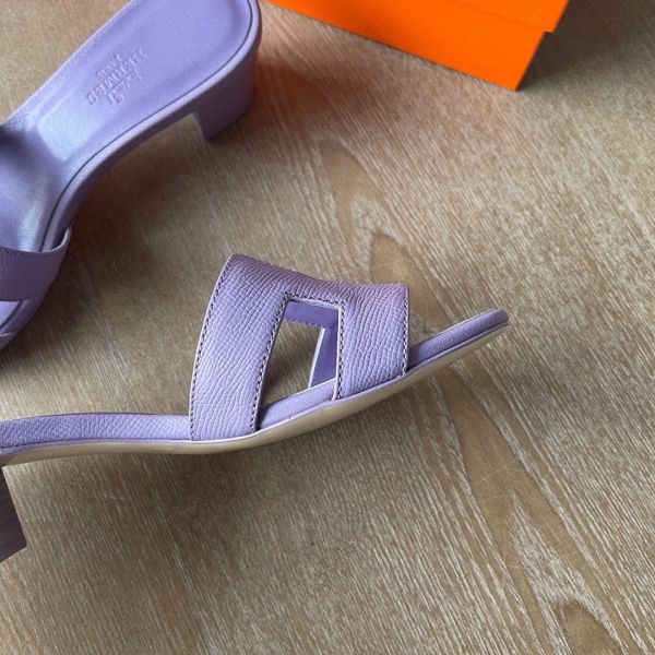 Hermes Oran Slide Sandals in White Swift Calfskin with Printed Lining