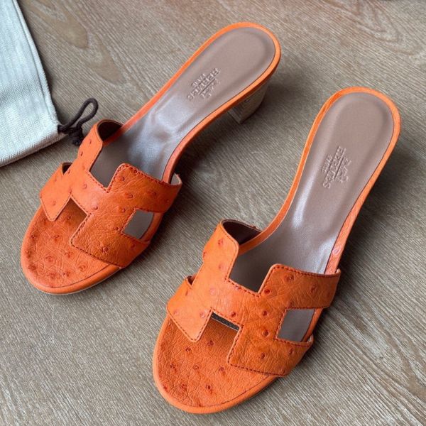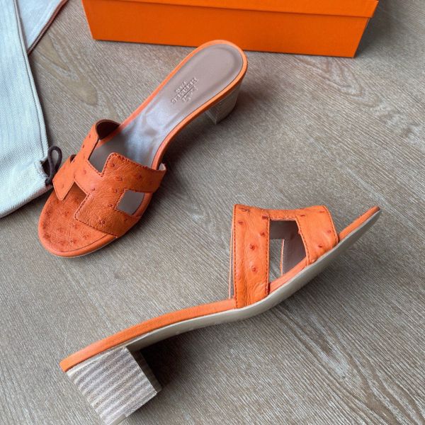 Hermes Oasis Sandals in Orange Ostrich Leather