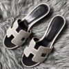 Hermes Oran Slide Sandals in White Swift Calfskin with Printed Lining