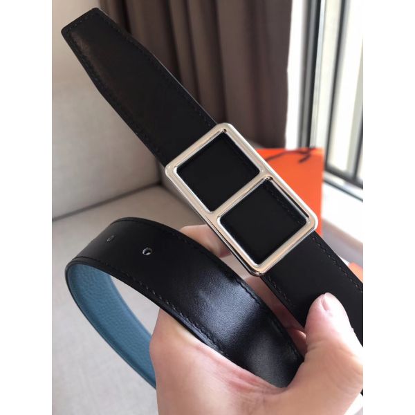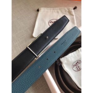 Hermes Constance Reversible Belt 38MM in Blue Clemence Leather