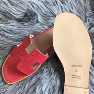 Hermes Oran Perforated Sandals In Red Epsom Leather