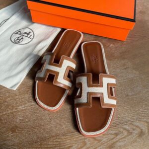 The sandal is an invitation to travel. Its journey begins on the shores of Oran, warmed by the radiant sun. Fashioned from Swift leather with H canvas, it makes its way between Ndebele houses. Created in 1997 by Pierre Hardy and enhanced by the iconic H cut, its style is minimalist and timeless. From one collection to the next, this summer icon is constantly reimagined in a multitude of colors and materials.