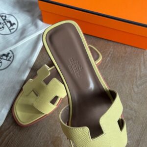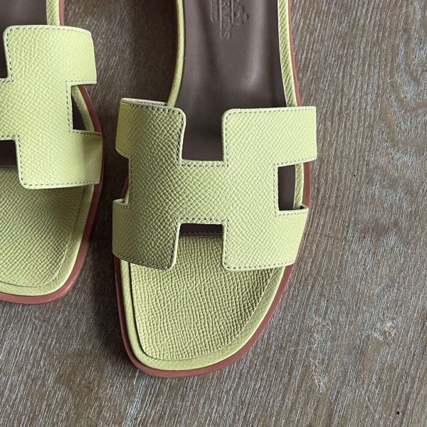 Hermes Oran Slide Sandals in Jaune Poussin Epsom Calfskin