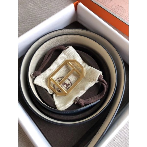 Hermes H Guillochee Reversible Belt 32MM in Gold and White Epsom Calfskin