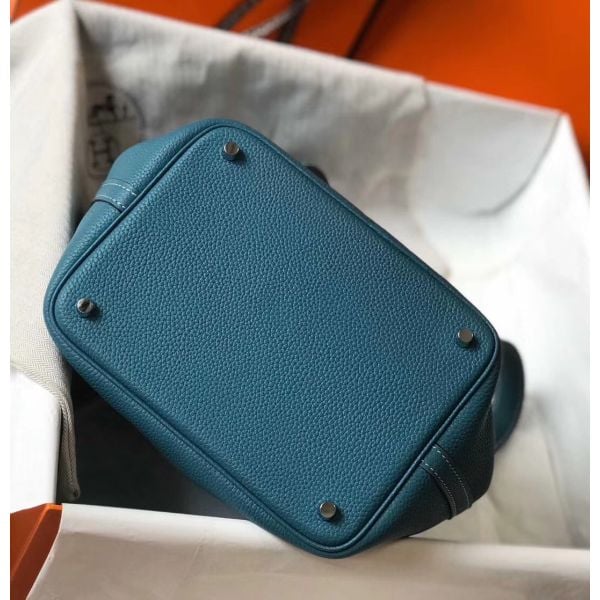 Hermes Picotin Lock 22 Bag In Blue Jean Clemence Leather