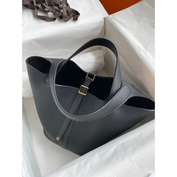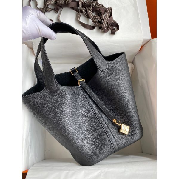 Hermes Picotin Lock 22 Handmade Bag in Black Clemence Leather