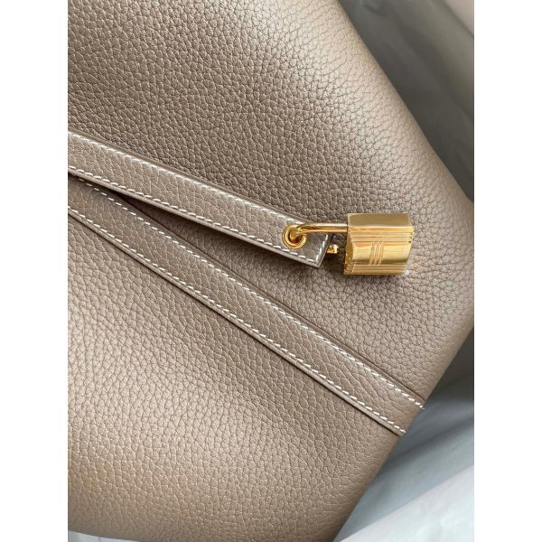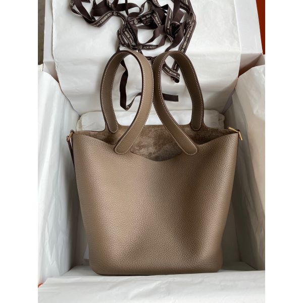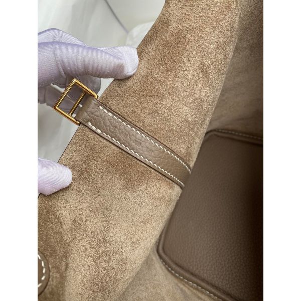 Hermes Picotin Lock 22 Handmade Bag in Taupe Clemence Leather