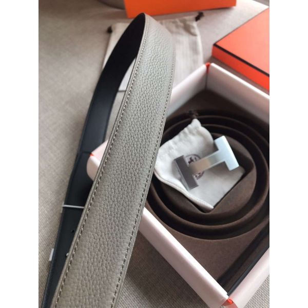 Hermes Gamma 13mm Belt in White Epsom Leather and Taupe Swift Leather