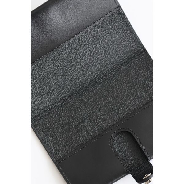 The perfect cover for a passport, the Hermes’s R.M.S Passport Holder in Box calfskin both protects and elevates. The signature Clou de Selle is decorated in colored lacquer, acting as a snap to secure the closure brings an understated allure to this functional accessory. Essentials to pair for a stylish departure to new horizons.