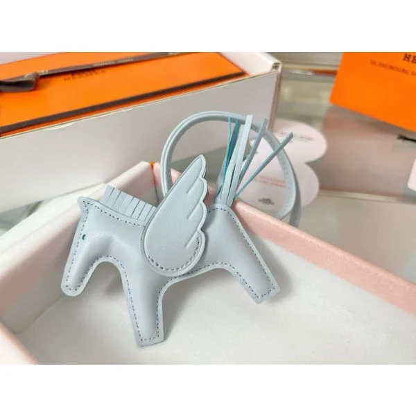 Hermes Rodeo Pegase PM Bag Charm in Blue Brume Lambskin