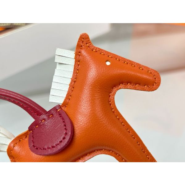 Hermes Rodeo PM Bag Charm in Orange/Craie/Red Lambskin