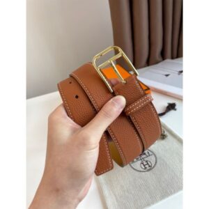 Hermes H Touareg Reversible Belt 32MM in Gold Clemence Leather