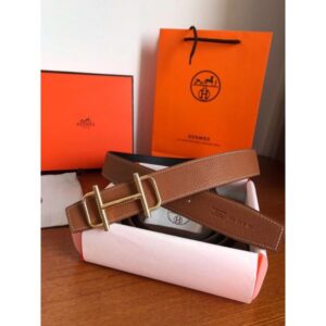Hermes Constance Reversible Belt 38MM in Gold Clemence Leather