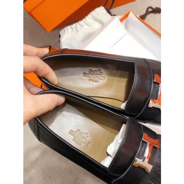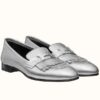 Hermes reworks its coveted ‘Royal’ loafers for the new season with a comfortable rubber heel. This smooth calfskin pair is decorated with a fringed trim that tops the neat toe. We like how the palladium-plated H buckle has an aged finish to mark it out as a heritage feature.