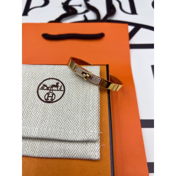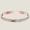 The Kelly is a name synonymous with Hermes. It is a symbol of their wondrous dedication to craftsmanship and classic style. First designed by Robert Dumas, the Kelly bag is known and coveted around the world. The lock of the bag, which is a turn lock, now appears in bracelets and jewelry. This bangle bracelet also carries the iconic Kelly lock. The lock is breathtakingly decorated with diamonds and each one is placed to catch the light at every angle. Brimming with lavish details and artistry, this wondrous creation deserves to be yours.
