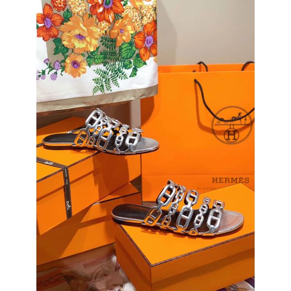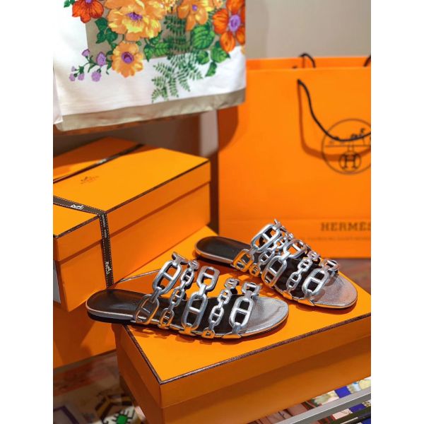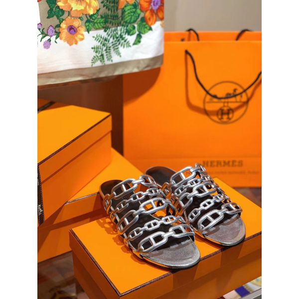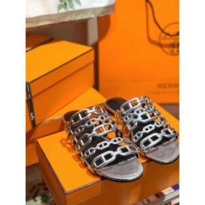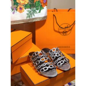 Hermes’s Thalassa slides will add a little sparkle to your outfit. Made from metallic calfskin leahter, they’re designed with five slender straps, each designed with Chaine d’Ancre motif. Take styling cues from the coolest Spring 2020 runways and wear them with something a little unexpected, like a satin suit.