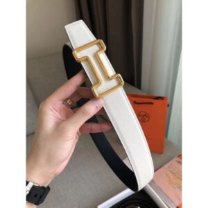 The timeless Tonight 38MM Reversible Belt epitomizes the values of Hermes, The accessory can be worn two ways, either showcasing the black Epsom leather on one side, or the white Epsom leather on the other. A “H” metallic buckle is the centerpiece of this refined belt.