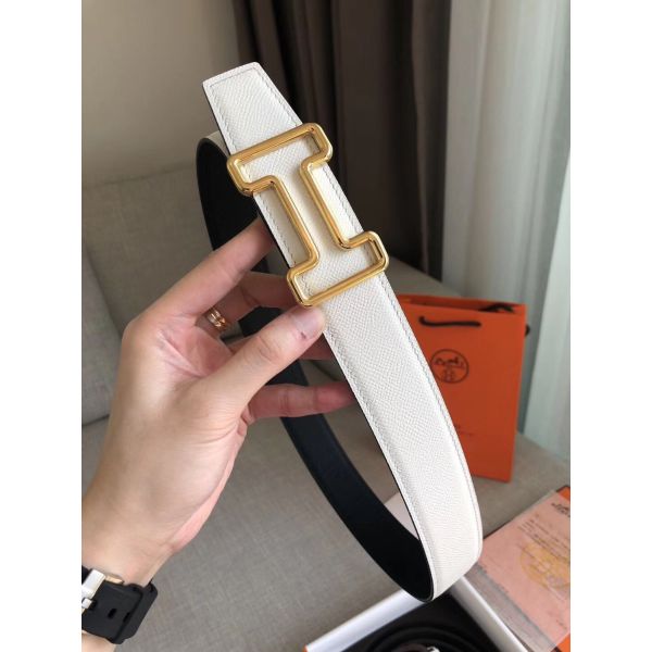 Hermes Mini Constance 24mm Belt in White Epsom Leather and Gold Swift Leather