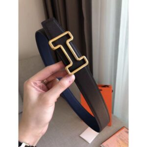 Hermes Mors H 24mm Reversible Belt in Blue and White Epsom Leather