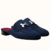 Hermes’s iconic Trocadero mule is reinterpreted this season in goatskin with an “H” detail in palladium plated. This timeless style features a monobloc construction combining several layers of leather for a thick, hard-wearing outsole and a comfortable insole.