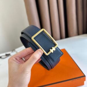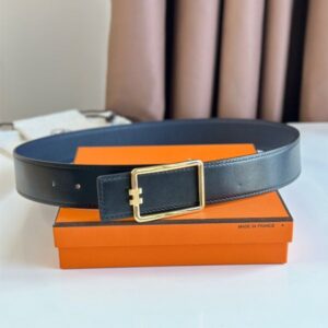 Hermes H Touareg Reversible Belt 32MM in Gold Clemence Leather