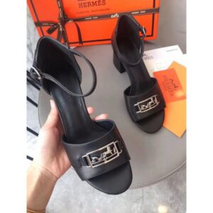 The Viaggio 60mm sandal contrasts the sleek simplicity of its upper in calf leather with detailed openwork hardware. This model is characterized by its block heel and a delicate strap around the ankle adds to the femininity of this design.