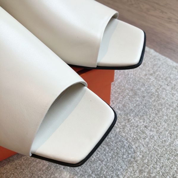 Hermes Oran Slide Sandals in White Swift Calfskin with Printed Lining