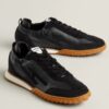 The Hermes’s Jet sneaker skillfully blends style and color. Its discreetly retro design is enhanced by the “H en biais” motif, giving it a unique allure. Fashioned from technical canvas and suede goatskin with contrasting design for a bold retro look. The rubber soles with Hermes H logos will quite literally put a spring in your step.